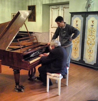 La ditta FratelliLeita è composta dai fratelli Michele e Alessandro Leita con sede a Prato Carnico in Friuli Venezia Giulia. Dopo varie esperienze nel settore del legno, nel 2007 ci siamo uniti aprendo un'attività nel settore della falegnameria: arredi e manufatti su misura, interventi di riparazione e manutenzione di arredi e infissi e restauro di mobili antichi. Essendo entrambi amanti della musica, abbiamo iniziato a interessarci al mondo degli strumenti musicali. La svolta è avvenuta con la conoscenza del M° Giovanni Canciani, grande studioso della musica ed esperto in restauro, membro della commissione di tutela degli organi antichi del Piemonte, nonché fondatore e curatore del Museo di strumenti musicali “La Mozartina”. Nel 2008 abbiamo iniziato un corso teorico/pratico di restauro degli strumenti musicali, in primis a tastiera, da lui tenuto, dove abbiamo appreso le nozioni sul funzionamento meccanico e acustico, la tecnica di accordatura, i vari materiali utilizzati e le tecniche per il restauro meccanico-fonico, consolidando anche le nostre conoscenze sulle varie tecniche di restauro delle parti lignee. Durante il corso abbiamo restaurato vari strumenti musicali, facendo una grande esperienza direttamente sul campo, tra cui pianoforti antichi e moderni, clavicembali e fortepiani, ecc. Nel 2010 abbiamo costruito il nostro primo strumento musicale, la copia di un piano square J. Broadwood del 1825 in occasione della partecipazione alla mostra di Artigianato Artistico organizzata dal Rotary Club, alla quale ci è stato conferito il premio “Mani Intelligenti”. L'attività di restauro e costruzione è proseguita in maniera crescente; nel 2013 siamo entrati a far parte della rete 12 To-Many e, insieme agli altri nodi della rete, abbiamo ottenuto la certificazione PEFC. Nel 2015 abbiamo costruito il primo strumento musicale al mondo con questa certificazione, un clavicembalo di scuola italiana ispirato all’originale G. B. Giusti del 1681, utilizzando materiale certificato e materiale locale. Lo strumento è stato inaugurato a Milano presso la fiera “Made Expo 2015”.
